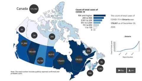 Figure 1: Count of total cases by province as of December 30th, 2020