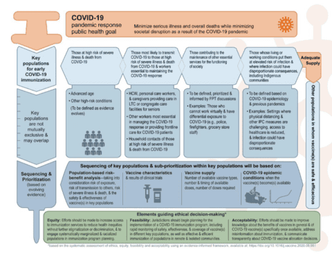 Canada has announced a three tiered prioritization approach to distribute the vaccine based on the NACI guidance (see Figure 3) released in November which identifies key populations for early COVID-19 immunization including; those at high risk for severe illness or death, front-line health care workers and other essential workers, the elderly (starting with those above the age of 80 years) and those living in marginalized communities including the Indigenous population.